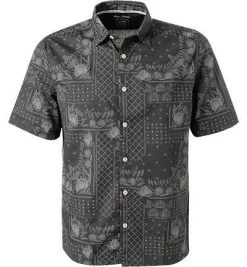 Marc O’Polo Hemd 123 7201 41012/V14 Kurzarmhemd, Shaped Fit, Baumwolle, Weiß-blau gemustert, Weiß