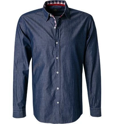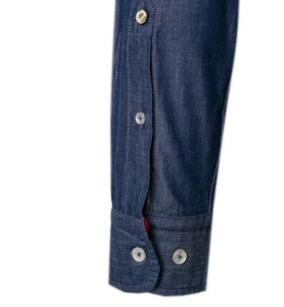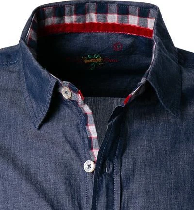 Extras: Ärmeluntertrittskante mit Kontrastmaterial eingefasst, Innere Manschette aus Kontrastmaterial, Innerer Kragensteg aus Kontrastmaterial, Kragensteg aus Kontrastmaterial, Saum mit Keileinsatz in der Seitennaht, Untertritt der Knopfleiste mit Kontrastmaterial eingefasst