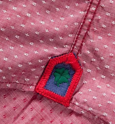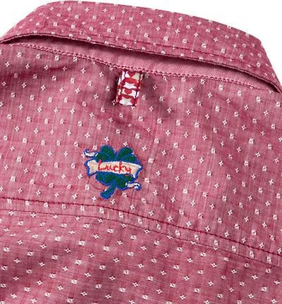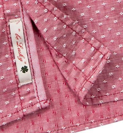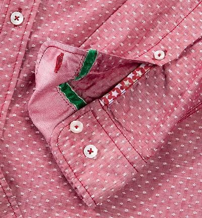Besonderheiten: Kragensteg, Paspelierung der Knopfleiste und Innenseiten der Manschetten sind aus rotem Oxford