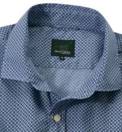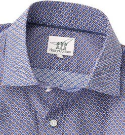 Henry Cotton’s Hemd Kent 5015750/26454/797 Popeline, Saphirblau-hellbraun gemustert, Blau