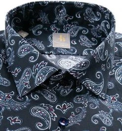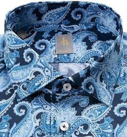 Jacques Britt Hemd Como 662110/17 Slim Fit, Popeline, Dunkelblau gemustert, Dunkelblau