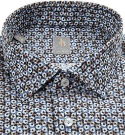 Jacques Britt Hemd Como 632310/26 Custom Fit, Baumwolle, Taubenblau-weiß gemustert, Braun