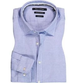 Marc O’Polo Hemd M22 7415 42216/D81 Shaped Fit, Popeline, Blau gestreift, Hellblau-weiß