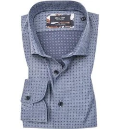 OLYMP Signature Tailored Fit 8557/84/14 Hemd, Baumwolle-Kaschmir, Nachtblau gemustert, Nachtblau
