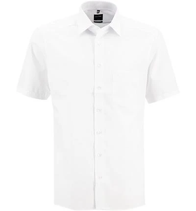 Das Kurzarmhemd präsentiert sich im eleganten Look und bietet dank softer Baumwollqualität perfekten Tragekomfort. Die glatte Knopfleiste und der Kent-Kragen unterstreichen die klassische Optik des Modells, mit dem Sie im Office immer punkten.