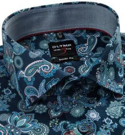 OLYMP Level Five Body Fit 69EL 2006/29/38 Hemd, Popeline, Extra langer Arm, Navy gemustert, Lila