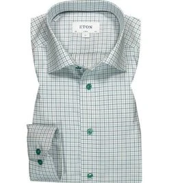 ETON Hemd 1000/02302/65 Classic Fit, Twill, Grün-weiß kariert, Grün-blau