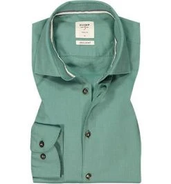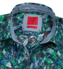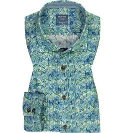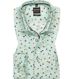 OLYMP Hemd Level Five Casual Body Fit 3082/72/45 Kurzarmhemd, Popeline, Grün-marine gemustert, Grün