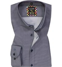 OLYMP No. Six Super Slim 2564/64/18 Hemd, Super Slim Fit, Baumwolle, Marine gemustert, Marine