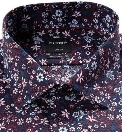 OLYMP Casual Level Five Body Fit 3000/44/35 Hemd, Casual Body Fit, Baumwolle, Navy-bordeaux gemustert, Rot