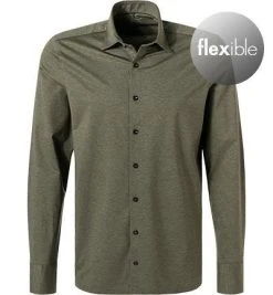 OLYMP Luxor Modern Fit 1202/64/47 Hemd, Jersey geruchshemmend, Olivgrün meliert, Oliv