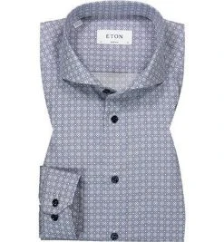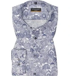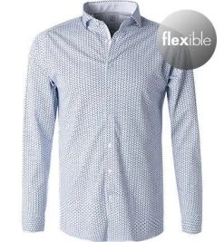 FIL NOIR Hemd Angelo 60200/00 Shaped Fit, Baumwolle CO2-Neutral, Weiß-blau gemustert, Weiß-blau