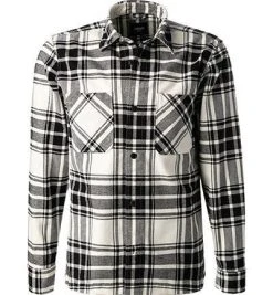 KARL LAGERFELD Hemd 605111/60/592648/010 Modern Fit, Popeline, Weiß-schwarz gemustert, Weiß-schwarz